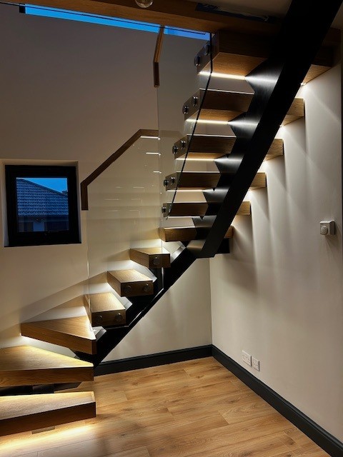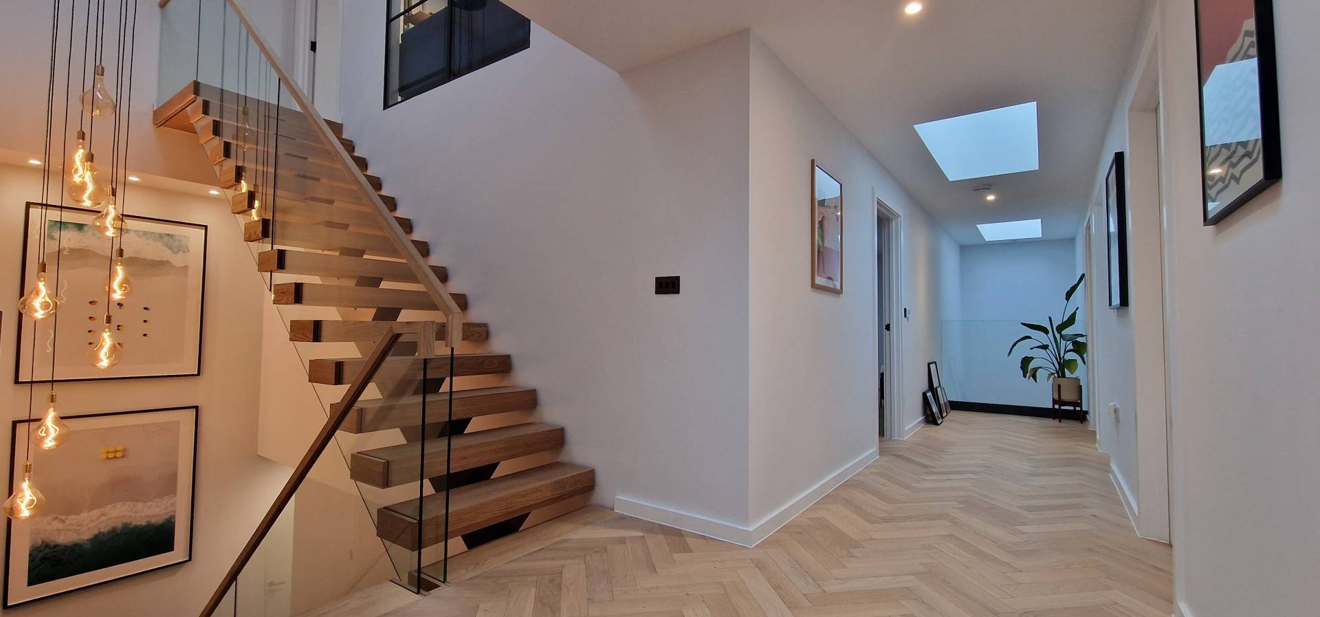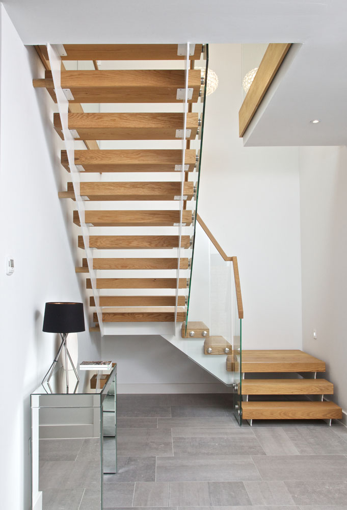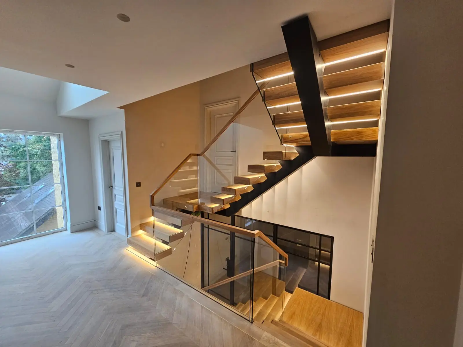 Staircase Gallery featuring our bespoke projects across the UK, including cantilever, centre spine, inboard string, zig zag string, cut-string and external stairs.